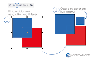 Intersect adalah tools shaping terfavorite dan paling banyak digunakan dari ke tujuh menu shaping, fungsinya sendiri adalah membentuk irisan antara dia buah objek yang bertumpuk, hasil irisan tersebut membentuk objek ketiga atau objek baru dari 2 buah objek yang sudah ada.